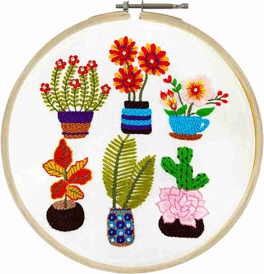 Embroiderymaterial Com Embroidery Kit Flower Pots Design Digital Printed All Material Included Embroidery Kit Flower Pots Design Digital Printed All Material Included Shop For Embroiderymaterial Com Products In India Flipkart Com